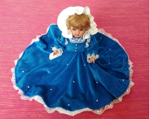 Una signora ultimamente mi ha chiesto di rifare l’abito ad una sua bambola che le era stata donata durante la Comunione, risaliva agli anni ’50…eccola quà dopo un bel restauro. Occuparmene è stato un onore.